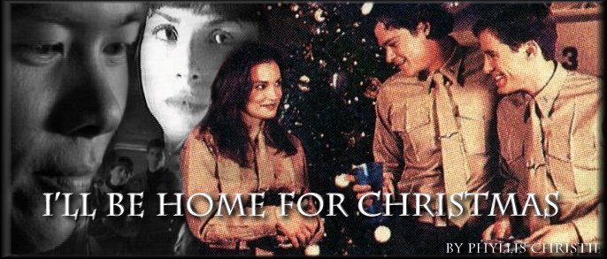 Tom and Mary Wang "It's a beautiful letter," Jen held on tightly to him. "He's right you know, Paul did think of you as a surrogate father." "I have no right to take that man's place," Jen had touched on a sore subject with him. "And I had no right to take that man's son away from him!" "You didn't," she leaned back and gray eyes met blue ones. "You were here, his dad couldn't be. You did what was needed to be done. Those actions gave Paul back his soul after what happened on Kazbek and Minerva. If you had transferred him as he asked, he never would have healed. I was in Sickbay when he was brought in, both times. I know what it cost him and I know what it must have cost you to help him the way you did." "It would have cost me more if I hadn't," he sighed and rubbed his nose against her neck, enjoying the soft rose fragrance that she always wore. "It's all part of caring," she kissed his cheek, where she knew there had been a bad burn scar 18 months ago. "In-vitros aren't taught to care, so when it happens we don't know what to do about it," he began to back her toward his bunk. "Often we end up hurting those around us and ourselves, as well. So we build walls to keep it all out, the good and the bad," he nibbled on her neck, knowing with her there was only the good. "You ask me once, months ago, why I understood your demons so well, when I wasn't an in-vitro," she sighed as her lab coat hit the deck. "I think that's why. We both built the same walls for the same reasons," she fought to hold onto her thought, as his hands distracted her. "Thank you for loving me enough to take a chance and forcing me to tear down my waaalllls," she gasped. The thought completely forgotten as his hands explored further. "My pleasure," he chuckled, knowing it was both of theirs. Mess Hall December 25, 2064 - 2200 hours The Chigs had given them an early wake up call when two heavy cruisers did a fly by of the Saratoga. It had been enough to put all pilots on alert, and have Ross, send out scouts. But no shots were fired and by noon everyone had been ordered to stand down from battle stations. The Mess Hall was festive and bright and the party was in full swing when Jenny arrived. This year, instead of scrubs and lab coat she had had time to change into a green sweater and pleated slacks. Everywhere she looked people had added touches of seasonal color to their uniforms or civilian clothes. "Jenny," Nathan called her over to join their group. "Merry Christmas," he looked around quickly, then held a piece of mistletoe above her head and kissed her on the cheek. "Nathan...." she laughed. "Put that thing away, or I'll tell Kylen," it was an empty threat and they both knew it. "I took it away from Coop, he was making the rounds with it," he handed her a drink and laughed as she curled her nose at it. "I think I had a run-in with this blue stuff last year," taking a sip answered her question for her. "Yup, same stuff." "Colonel," Nathan motioned to McQueen. "Would you join us for a toast?" McQueen looked around the group of people he was so much a part of and his hand moved out and touched Jen's standing beside him. Vansen and Hawkes were smiling, each carrying an envelope from the Saratoga's bowling lanes in one hand and a drink in the other. Chico Voss, MD, was holding tightly to Maria Del Mar's hand and the Colonel wished he and Jen had the freedom to be so open about their affection. Mitch Connelly had his arm around Damphousse's shoulders in a show of camaraderie, but the older man could see something more intent in the younger's eyes. He knew that being in the same squad would force Mitch to keep his distance, giving Vanessa time to heal from the last year. Nathan was standing on Jen's other side, looking content and relaxed for the first time in a long while. For one moment the Colonel looked further. He looked for two faces that were missing. They had been here last year and because of their parents' letters, were here in spirit this year. "Jen, it's your toast," he looked down into deep gray eyes that had grown misty. "To missing friends," her voice hitched as she thought of all the people she had lost in the last year and a half. "And to those who have been returned to us," in defiance, she gripped McQueen's hands. She had thought him dead or almost dead twice. It wasn't going to happen again! "To Paul," Vanessa added. "To Kelly," Coop smiled and raised his glass as Vansen and `Phousse lightly touch identical slim gold chains each was wearing around her neck. "To John," Shane whispered, but her eyes remained clear and calm. "To Neil," Nathan raised his glass. And his heart gave a silent `thank you' that this year he wasn't toasting Kylen. "To the 29th," Maria and Connelly spoke at the same time. They had been the only ones of their squad to return from Demios. "To Butts," McQueen whispered, knowing that Jen would be the only other person to understand his toast. "To The Angels," Jen's voice faltered as she raised her glass. In her mind Gloria Collins' voice was strong and clear, Merry Christmas to you too, Angel-Doc "Merry Christmas and Semper Fi," they all spoke in unison. McQueen's Quarters after the party Sitting on his desk were a pair of red suede surgical clogs with a note, `for the inner woman.' Beside them, was a 1 ounce black crystal bottle that gave off the slight scent of roses. The note that went with that read, `for the one you show to the world.' McQueen didn't know which Jen had enjoyed more. The red clogs that were so much a part of the hidden side of her or the perfume, that she loved. At the time he had ordered both, he hadn't know about the sexy lingerie that she always wore under her sedate clothes and scrubs. But he had known that she had a streak of passion that she kept hidden from everyone, even herself. Her perfume the only clue. With the gifts he had given her, was the scrapbook she had made up for him. He didn't know where she had gotten all the pictures of him, but he figured