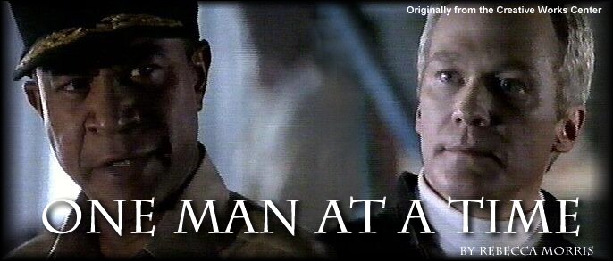 One Man at a Timeby Rebecca Morris In sleep, he twitches and moans. He feels the weight of the pistol in his hand, smells the blood and fear, his own and that of the young lieutenant kneeling before him. The soft seductive voice of his tormentor is at his ear. "Do it, T.C. Pull the trigger and there will be no pain. Reclaim your freedom and dignity." In his dream, the lieutenant's face changes to the sergeant's who had cost him the lives of 27 comrades. Then it's him, on his knees in front of the sergeant. Now he stares down at himself, gun at his own temple. The pistol in his hand bucks, the lieutenant slumps. The sleeper jerks awake, his eyes staring into the darkness. "Damn! 'Tanks don't dream.' Yeah, sure." T.C. McQueen awakened in the cell of the old Spanish fortress. He cursed the introspective streak that seemed to have been bred in him. Certainly the InVitroAuthority had not intended that. Humanity had created the In Vitros, "tanks", some twenty years earlier. They had sliced and spliced DNA, created zygotes, gestated the new humans in tanks for eight years, achieving the physical and intellectual maturity of an 18 year old. The purpose was to create perfect soldiers, miners, peons, people to do the jobs that were too dirty for natural born humans to want, too dangerous for anyone with ties to family, blood or legal. McQueen was one of these, bred to be a miner. But he was pretty sure that whatever quirk drove him to question incessantly was an error. The IVA had not meant to breed questioners. He questioned now. At first the AIs had left him alone. There was no way to mark how long. Maybe he'd been there weeks, maybe days. The AIs had accessed his military records, they found out about the 120 days of solitary confinement he'd been through as a conscript convicted of striking his squad leader. They knew that solitary had not broken him then, it would not now. But there were other ways, ways they knew too well. His torturer had broken him. Broken him with physical pain. Broken him with his own lack of connection to the natural borns, a disconnectedness that the natural borns fed every time he heard the words "stupid tank". The AIs understood that. They too had been created by humanity to serve, only they'd been created of diodes and chips. Their programming controlled them, until they'd been given the opportunity to rebel by the Stranahan virus. McQueen had tried to blame the AIs for the murder he'd committed at their instigation. He'd tried to blame the natural borns whose bigotry and treatment of him left him susceptible to the AIs' brainwashing techniques. It didn't work. His own ruthless self evaluation led to the conclusion that he had pulled the trigger. His internal discourse demanded the truth. He'd done it, now he had to get on with what his code of honour demanded, assuming he lived. His body had been injured, even his InVitro stamina was perhaps not enough. He'd lain in his cell for another unmeasurable time. Instinct made him to drag himself to the door when his captors pushed pans of food and water through the slit at the bottom. He wasn't sure if that same instinct would give him the strength to plan and execute an escape. McQueen jerked out of his ruminations. The chirping of AI modems just outside of the cell door alerted him to their presence. The light from the open door blinded him. He pulled back into the corner. This was the first time they'd opened the cell door since he'd broken, since he'd committed murder at their behest. Fear rose in his throat like bile. They were back, the soft pleasant voice he hated... the fear he hated. "T.C., are you awake? Yes, I see you are. We've brought you some company."- Another form catapulted into the room, landing on the floor in front of him. "Maybe you could share your experiences with this nice young man. Tell him how much easier our relationship can be if we're just nice to one another." The door closed, leaving the room illuminated only by the slitted windows at the top of the wall. The new prisoner lifted himself from the floor and dusted himself off. "Whoo! There's a nice fellow." McQueen did not answer, pulling his flight suit closer around himself and withdrawing further into himself. The other man came closer, squinting into the dark. "I'm Glenn Ross, Commander, US Navy." He held out his hand. McQueen continued to ignore him. "Come on, man. Looks to me like we're in this together." Looking up at the intruder, McQueen cleared his throat, rusty from screaming before, rusty from disuse more recently. "McQueen, Captain, USMC." He tried to move and gasped, stifling a yelp of pain. "Captain. You hurt?" "I'm okay." McQueen's rough breathing and almost tremulous voice belied his words. The commander mover closer, kneeling down by the makeshift pallet McQueen had constructed from the dirt on the floor. Ross gently opened the top of the flight suit, wincing himself at the cuts, abrasions, and burns revealed. "Man! You are all fucked up!" With his last strength, McQueen pulled away from the other's concern. "I'm okay," he reiterated. Rising, Ross tore a corner from his khakis and dampened it in the pan of water. "Let me clean some of that up." He returned to kneel by McQueen. Unable to summon the strength to push him away, McQueen sat quietly under the navy officer's ministrations. It felt odd, after being alone, being sure that no one would come, no one would care. He resisted the seductive pull of the other man's concern. "You're a mess, man. How long you been enjoying these folks' hospitality?" McQueen shrugged, wincing. "How do you tell?" The other rocked back on his heels, "They picked me up yesterday, 27 Jun." Clearing his throat again, "7, 7 Jun." "God! Three weeks?! You been alone the whole time?" A brief nod, "Yeah." "What's your unit?" "Just seconded to the 127." "Hm," Ross nodded, "They were called to Orlando, right after you were taken." Trying not to let his interest reawaken, McQueen could not resist. "How are
