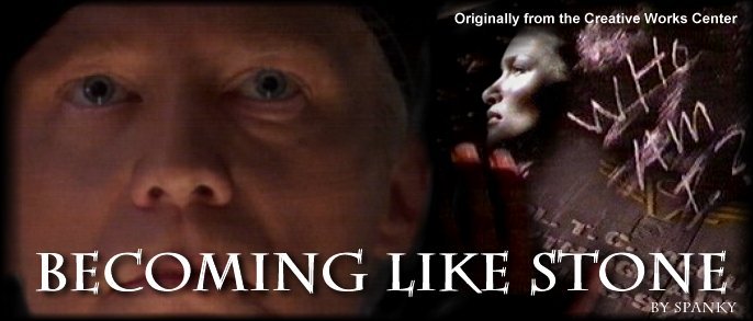 A little background, without giving too much away. I started this after seeing Dark Side of the Sun and finished it right before Stay with the Dead. It takes place sometime after Ray Butts and before Hostile Visit. It becomes evident I was only guessing at what could be keeping Ty grounded. But whatever else is wrong or right with the story, I'm proud of guesses I made that were born out in later eps, especially Angriest Angel. On the other hand, there were plenty of things I couldn't even have dreamed up that were revealed in *that* ep. Eh. Here 'tis. See what you think. Becoming Like Stoneby Spanky Part One