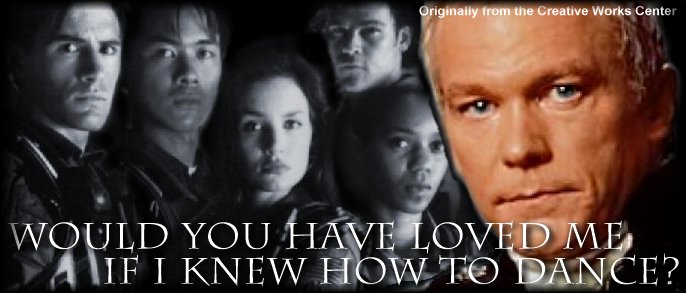 the hints from past episodes, and should not be taken as gospel. Would You Have Loved Me if I Knew How to Dance?bySheryl Clay Part One PROLOGUE: 2053 He sat at the bar alone. The rest of his squadron, the 42nd Air Cavalry, spread out behind him, laughing, drinking, celebrating their continuing survival. He did not move to join them. They would not welcome him, if he did. Captain Tyrus Cassius McQueen stared into his beer. He sensed, rather than saw, the figure that took the stool next to him. "Beer," the woman said. "And Captain McQueen's drink is on me." "No, it's not," McQueen countered tersely under his breath. "Don't be an asshole, McQueen," the woman said, "just because *they* are." McQueen turned and looked at her. She was attractive enough, about his age, though not exactly beautiful, in any classical sense of the word. Her features were too strong, a little too fierce, for anything like classical beauty. There was something *arresting* about her, though. An intensity, an energy, that was very compelling. Captain A.J. Barnes. Her nearness, her gesture buying his drink, made McQueen uncomfortable. "Barnes, you don't need to do this," he said, his voice still gruff, but the anger gone from it. The woman shrugged. "Maybe I'm not doing it for you," she said, stroking the side of her beer glass absently. "Maybe I'm doing it for me." McQueen watched her finger trail up the side of the glass, and felt his groin crawl in response. He pushed the thought away angrily. "Why?" he snapped. "What, are you slumming?" "You saved our asses out there, yesterday," Barnes said, unperturbed by his tone. She pushed her fingers through wavy dark hair. "Maybe I'm just trying to say thank you." She glanced over at him out of the corner of her eye, her expression suddenly impish. "The polite response is generally considered to be 'you're welcome,'" she quipped. McQueen looked at her sharply, his guard up, he eyes wary, braced for ridicule, for pain. Barnes expression was bland, almost placid, and no malice showed in her dark eyes. He relaxed a little, after a moment, and ventured a small smile. "Yeah, well, I'm not real up on good manners," he replied, "not having had the benefit of a familial upbringing." He regretted the words the moment he spoke them. He hated the self-pitying sound. But Barnes did not seem to notice. "You're in good company," she grumbled, nodding her head behind her. "And they don't have your excuse." "A.J.!" a male voice shouted behind them. Barnes turned and McQueen shifted his weight around so that he could put a face to the voice without turning, himself. Richard Luth. He should have guessed. Major. Squadron leader of the 23rd. Handsome. Dashing, even. Arrogant. Natural born. "Come on!" the man demanded. "In a minute," Barnes replied evenly, turning back to her drink. "Look, I don't want any trouble," McQueen began. Barnes glanced at him out of the corner of her eye, and McQueen could see anger in her expression. "He doesn't own me, yet," she growled. "He's just showing off." McQueen looked down at her hands and acknowledged the diamond solitaire on the third finger of her left hand. He felt a sudden foreboding, and an inexplicable sense of loss. He looked down at his drink. "A.J. What does it stand for?" he ventured hesitantly, after a moment. "Anjelica," she said, sounding pleased to change the subject. "Actually, I kind of like the traditional pronunciation - ang-gay-'lee- ka. It's Greek." McQueen nodded thoughtfully. "Pretty." "It's kind of a mouthful, though. Not the kind of thing you want to have to say in a hurry." McQueen offered her a faint smile. "Does it have a diminutive? In Greek, I mean." Barnes laughed. "Yeah, but it's just as long. Ang- gay- 'lee - kee. Just change the final 'a' to an 'ee.' A.J. works as well as anything. I'm not wild about Angie, and that's about the only other choice." She took a sip of her beer. "And T.C. stands for Tyrus Cassius, right?" she asked. McQueen could not decide if he was more amazed that she knew this, or that he was even having this conversation. He made a surreptitious glance over his shoulder, but no one seemed to be paying them any attention. Luth appeared to have gone back to his friends and his drink. "Yeah," he replied to her question. "Talk about your mouthfuls." Barnes smiled. "Were you named for anyone special?" she asked. The question seemed innocent enough. McQueen held back the angry retort on his tongue, and answered her honestly. "A baseball player and a boxer, from the late twentieth century. The head monitor in my facility had a thing for sports history." Barnes nodded. "Anjelica was my great grandmother's name," she glossed. McQueen looked at his beer again. "It must be interesting, having a great grandmother, having parents, family," he said, his guard slipping, finally. There was no self-pity in his voice, this time, just wonder. "It's not all it's cracked up to be, actually," Barnes replied matter-of- factly. "My mother's an alcoholic. I don't know my dad too well. I'm not sure they're all that worth the having, to tell you the truth. I joined the service to get away." "At least, you know who you are." "You are who you are," Barnes shrugged. "The only person you can blame for yourself is yourself. Doesn't matter if you're natural born or IV. Ultimately, we're each responsible." McQueen looked at her in wonder, realizing she was completely serious. He also noticed, suddenly, that she always referred to In Vitros as IVs, and not the more common, and derogatory, "tanks". "A.J.!" Luth called again, insistent now. Barnes turned in irritation. "Leave the tank alone and get over here!" Barnes stiffened belligerently, but McQueen headed her off. "I really *don't* want any trouble," he reiterated. She hesitated, then nodded. "Look, I'd invite you to join us... I'd like it if you *would* join us, but they'll treat you like shit, and there's not a whole lot I can do about it." McQueen nodded. "It's all right. I was going b